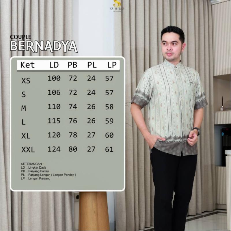 * SPESIFIKASI COUPLE BERNADYA BY SS HIJAB* Mempunyai 4 pilihan warna : - DARK BROWN - TEAL GREEN - SOFT PURPLE - SAGE Menggunakan Bahan : *YORIS & TOPAZ MOTIF * •• *SPESIFIKASI GAMIS MOM* •• Busui Friendly •• Wudhu Friendly •• Menggunakan resleting bobok dibagian depan •• menggunakan manset karet •• terdapat saku sebelah kanan ••terdapat tali samping •• *SPESIFIKASI SEMI OUTER* •• terdapat variasi Swarovski bagian depan •• variasi layer gelombang bagian tangan •• *SPESIFIKASI KOKO AYAH* •• Berlogo Al-Azzam •• Menggunakan kerah Shanghai •• Terdapat saku bobok dibagian depan •• terdapat metal tag Al-Azzam bagian saku •• Menggunakan kancing berlogo Al-Azzam •• kancing sembunyi •• Terdapat 2 pilihan lengan panjang dan lengan pendek •• Untuk lengan panjang terdapat 1 variasi kancing hidup yang bisa dilepas pasang •• *PILIHAN KHIMAR IBU* •• Khimar basic 90/115 •• Khimar lancip 90/115 •• Pashmina 70/175